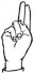 На ћирилици написано КЛАУДИЈЕ ШТАЈЦЕР састоји се из 15 слова [?]. Исписано ћириличном једноручном азбуком за глувонеме: